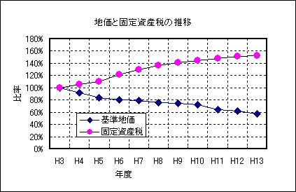 さらに平成十五年度は固定資産の評価替えの時期で、これに伴い、固定資産税の増税が続くことが心配されます。